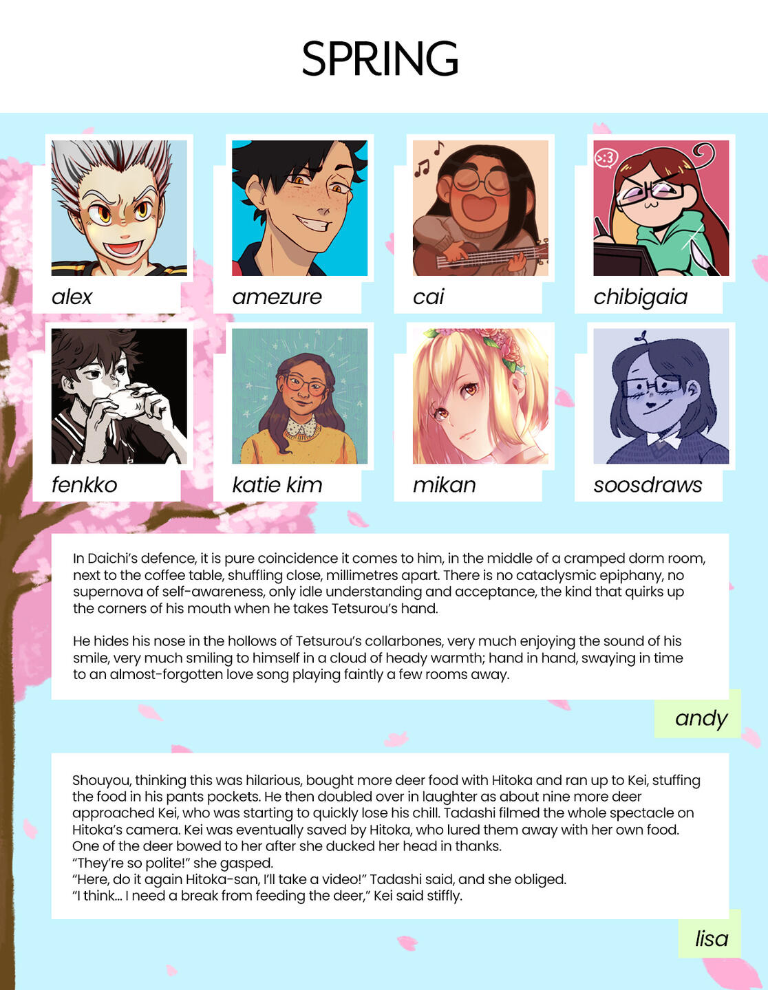 Yes, ships are allowed in your application, but please keep them SFW.How many contributors will there be for this zine?