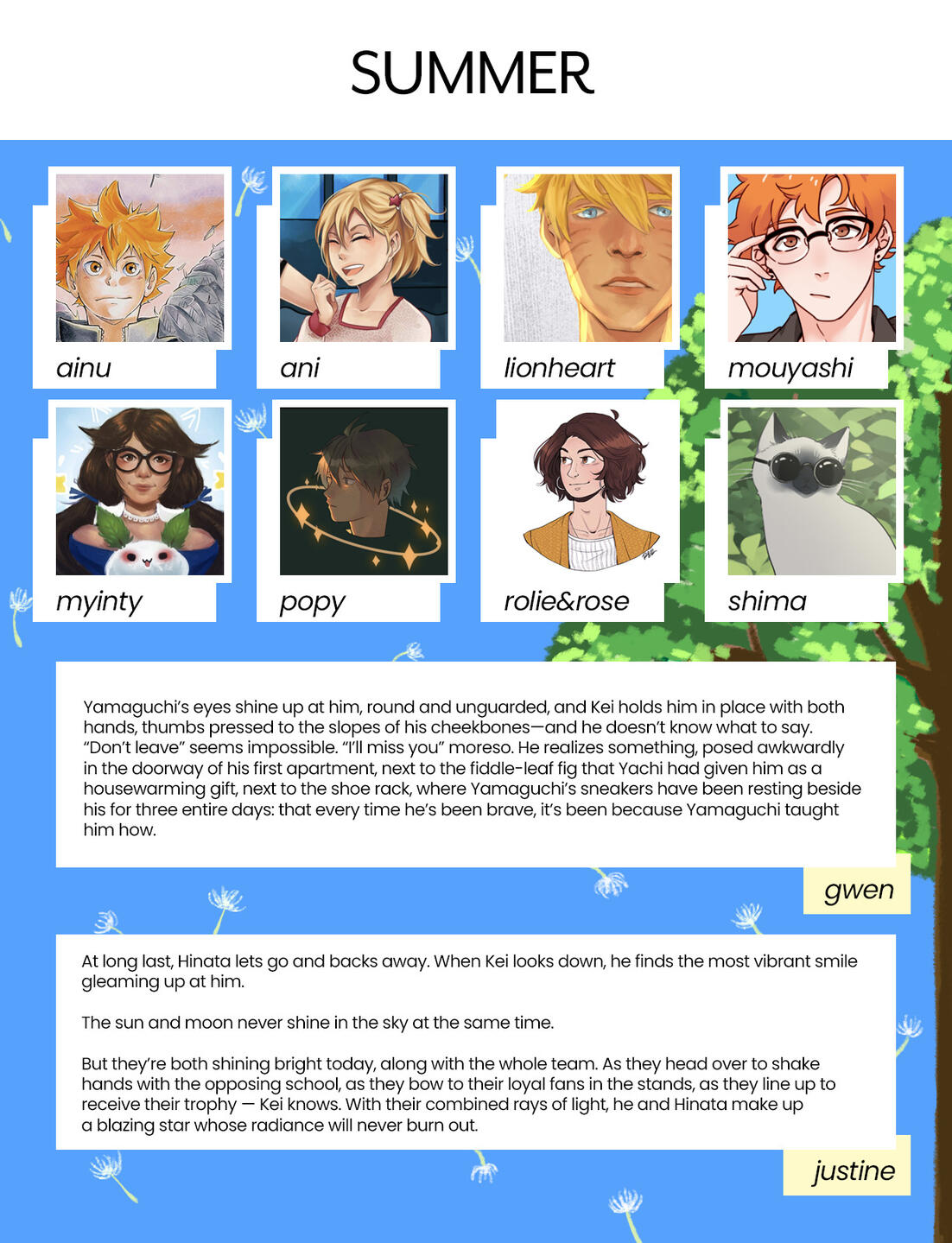 Having Haikyuu related work(s) is highly encouraged but not mandatory
